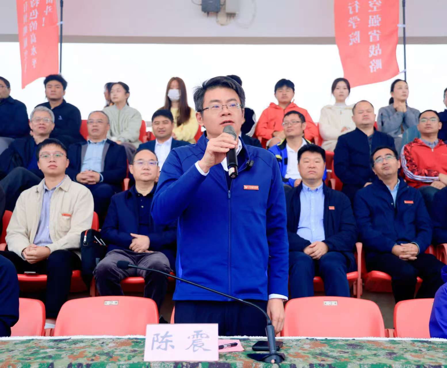 陈震宣布运动会开幕,现场掌声雷动,气氛热烈。