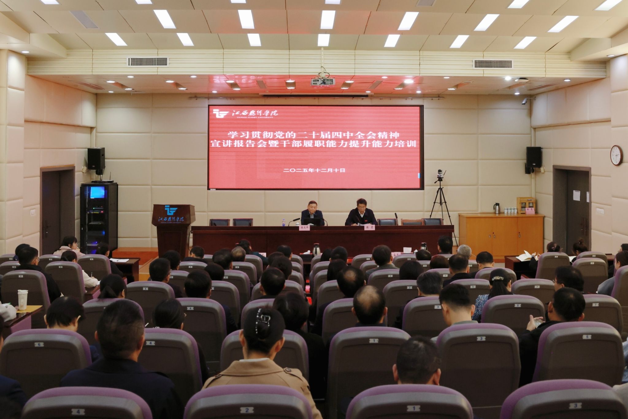202512月5日,学校召开专题会议,传达学习省委十五届九次全会精神。会议由校党委书记陈震主持。在家校领导,党政部门负责同志,各二级学院党总支书记,马克思主义学院负责人参加会议。会议指出,省委十五届九次全会是在全省上下深入学习贯彻党的二十届四中全会精神、科学谋划“十五五”规划、奋力谱写中国式现代化江西篇章的关键时刻召开的一次重要会议,具有重大而深远的意义。全会审议通过的《中共江西省委关于制定全省国民经济和社会发展第十五个五年规划的建议》...