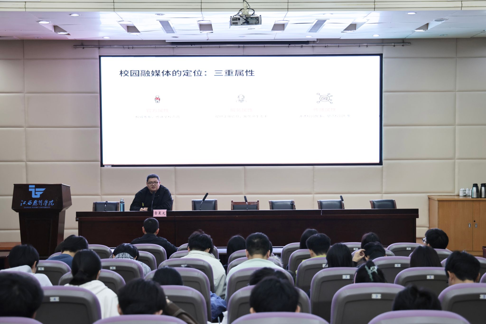 雷晨光以“看见受众:校园融媒体运营中的群体心理与传播行为——从‘我发什么’到‘师生爱看什么’”为主题,结合自身在广告传播、品牌管理、市场营销等领域的研究,围绕校园融媒体运营中的受众心理与传播策略展开深入讲解。他表示,校园融媒体工作者要真正“看见受众”,深入分析师生群体的信息接收习惯与心理特征,推动传播思维从“我发什么”向“师生爱看什么”“师生需要什么”转变,切实提升内容创作的针对性与感染力。讲座内容翔实、案例丰富,现场气氛热烈。