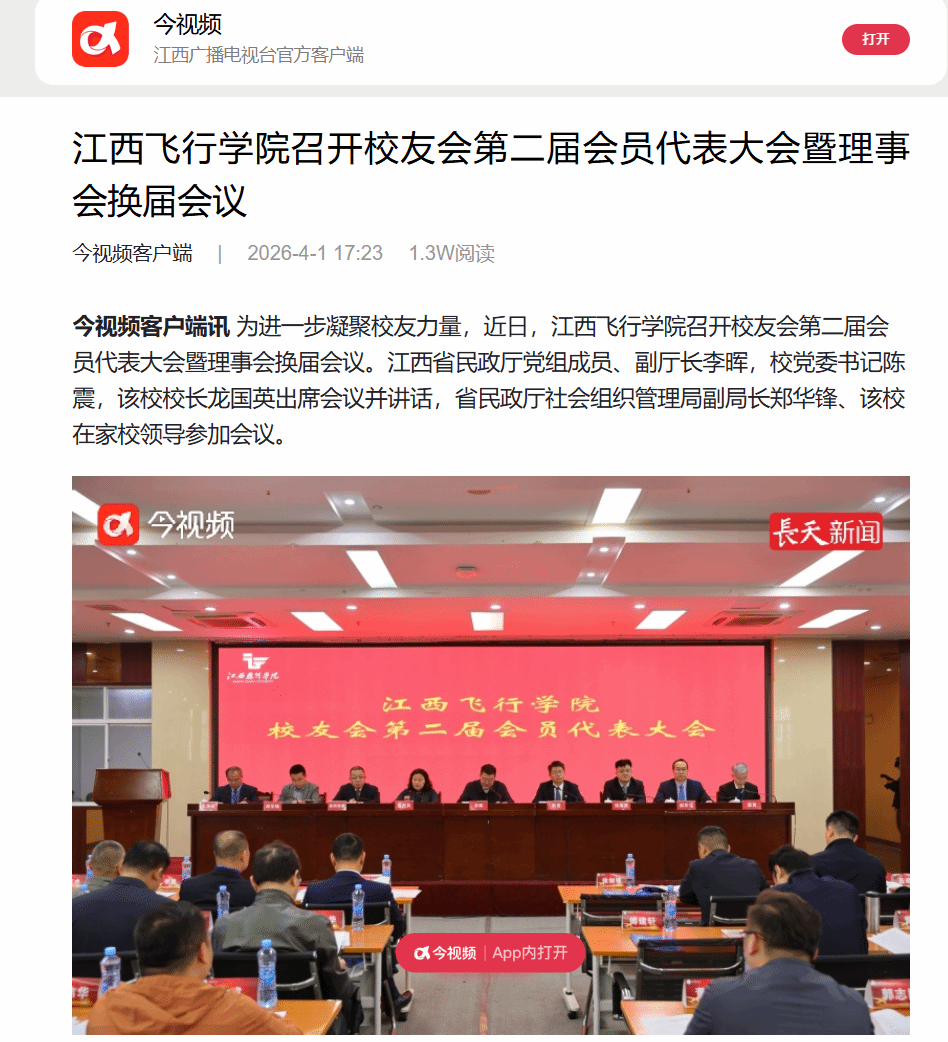 近日,今视频报道,江西飞行学院召开校友会第二届会员代表大会暨理事会换届会议详情如下: