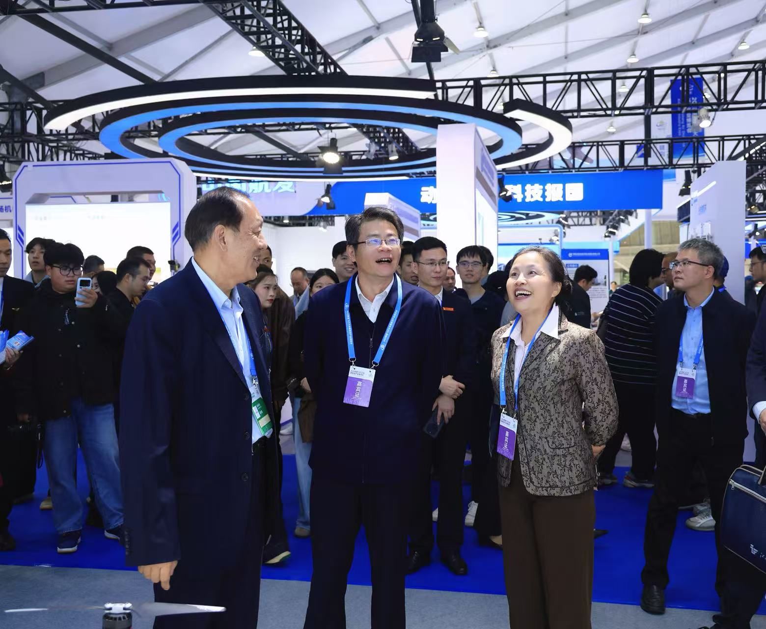 开幕式后陈震、龙国英来到学校设置在本次大会航空企业展区的学校特装展位,察看布展情况,亲切看望参与参展工作的师生员工,勉励大家要继续发扬团结奋战的精神,以专业细致的讲解和热情周到的服务,向广大市民充分展示办学特色与精神风貌。