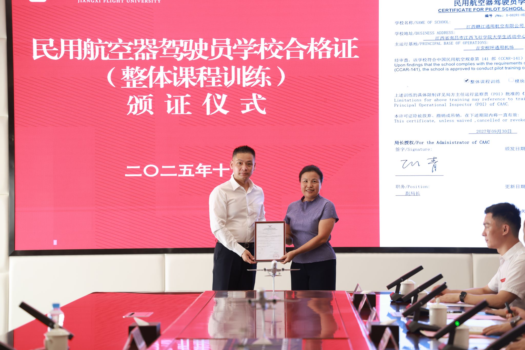 近日,江西飞行学院获颁中国民航局CCAR-141部民用航空驾驶员学校合格证(整体课程训练),这是江西省历史上首次获得该项资质,学校成为全省唯一一所、长江以南第一所、全国少数几所具备“学历+执照”一体化全过程培养飞行员资质和能力的高校,标志着学校在构建航空飞行人才全过程培养生态中实现重大突破,也意味着学校朝着建成具有鲜明航空飞行和通航服务特色高水平应用型大学目标又迈出重要一步。
