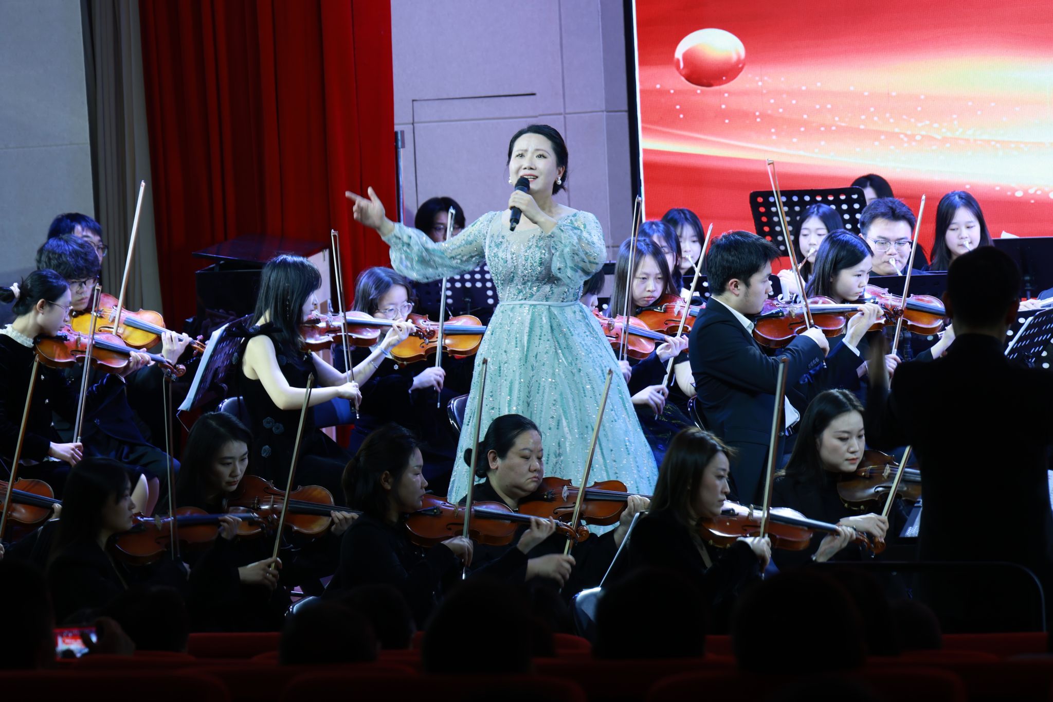 英雄交响乐团的师生艺术家们在青年指挥家许灏的激情指挥下,先后精彩呈现了民族交响经典《红旗颂》《北京喜讯到边寨》等作品。二胡名曲《战马奔腾》由青年演奏家程旭阳和黄静宜完美演绎。青年歌唱家王丹激情演唱了《在希望的田野上》,女高音歌唱家邹伟雯演唱了《灯火里的中国》。男高音歌唱家孔江闽,女高音歌唱家余菲和王昭瑜三人联袂呈现《我和我的祖国》及《领航》等经典曲目。整场演出充分诠释了交响音乐的魅力。交响乐团和民族器乐二胡的独特韵味的结合,演出融独唱、重唱一体和重奏为一体,以真挚声线传递时代情感,气势恢宏、旋律动听,生动诠释了信仰与力量。现场师生掌声不断、气氛热烈,为新年平添了浓厚的艺术氛围。这场视听盛宴不仅是一堂生动的美育实践课,更是一场能量满满的红色思政课,也见证了两校以艺通心、美育共融的良好情谊。