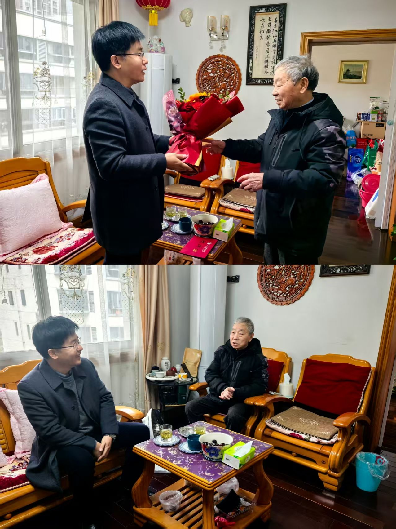 2026年春节将至,为弘扬尊老敬老优良传统,表达学校对退休老干部的深切关怀,近日,学校组织开展春节前夕走访慰问送温暖活动,将校党委和行政的关心关怀落到实处,为老同志们送去组织的温暖与节日的祝福。