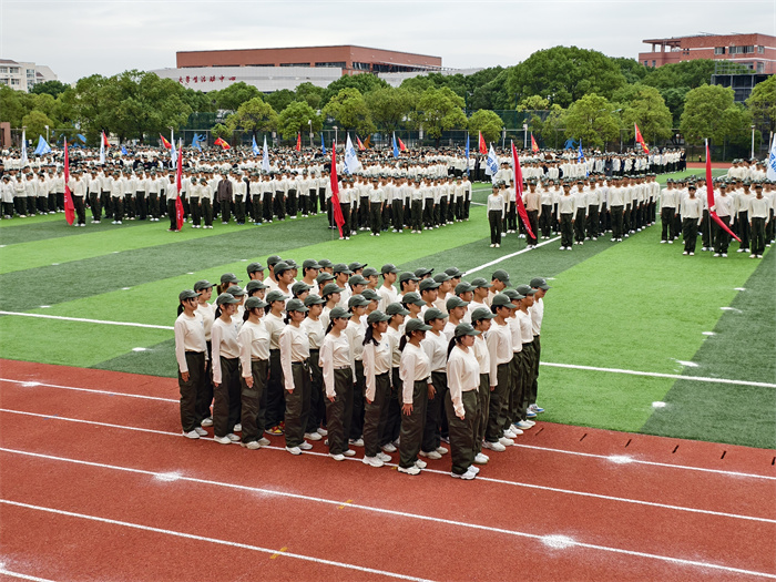 在雄壮的国歌声中,结训仪式拉开帷幕。校党委书记陈震下达军训结训仪式的指令后,各二级学院军训方阵在旗手的引领下,迈着整齐的步伐,依次通过主席台接受检阅。擒敌方阵中,同学们动作规范、拳法精准,展现出了良好的擒拿格斗技能;刺杀方阵则是气势如虹,同学们手持训练枪,出击干净利落、势如猛虎,展现出无畏的勇气和决心。