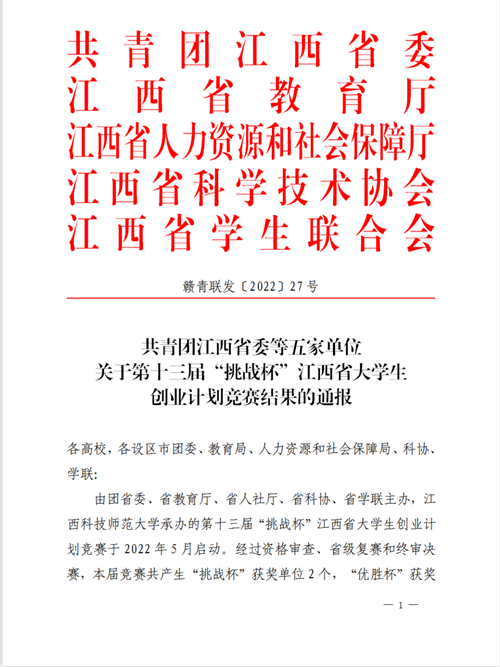 近期,第十三届“挑战杯”江西省大学生创业计划竞赛结果公布,学校参赛作品《美丽桐古—红色桐古现代化建设规划项目》荣获本次大赛铜奖。