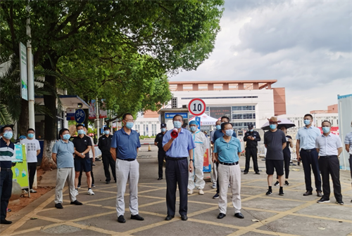 演习前,潘晓华同志作动员讲话。他强调,为迎接党的二十大胜利召开,确保校园安全稳定,全校师生要进一步提高政治站位,筑牢“外防输入”疫情防控防线,严格落实上级和属地疫情防控文件精神,确保将每项工作要求执行到位。开学后,各二级学院和有关职能部门要将学生思想政治工作与疫情防控教育结合起来,引导学生自觉遵守校规校纪,主动配合学校管理和各项疫情防控举措。各部门、各二级学院要按照学校开学报到方案的要求,确保学生秋季开学平稳有序。最后,他向冒着酷暑高温参加演练和观摩的全体师生致以亲切地慰问。