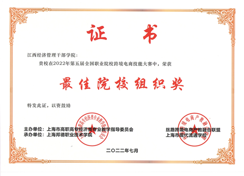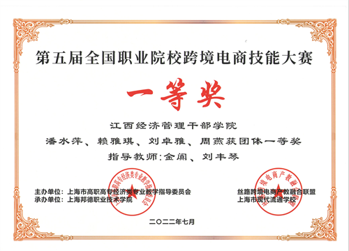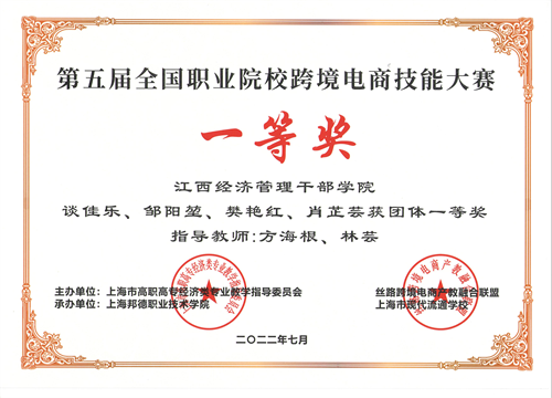 2022年6月19日,“第五届全国职业院校跨境电商技能大赛”在线上举行。该大赛由上海市高职高专经济类专业教学指导委员会和丝路跨境电商产教融合联盟主办,上海邦德职业技术学院和上海市现代流通学校承办,上海市宝山区职业教育集团、上海信言信息科技有限公司等单位协办,厦门优优汇联信息科技股份有限公司提供技术支持。全国165所职业院校、1255个队伍、5020名学生参加大赛。决赛设参赛团队一、二、三等奖。