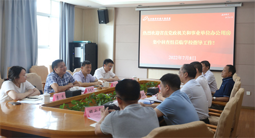 7月8日上午,省直党政机关和事业单位办公用房清理工作领导小组王建平组长一行来校指导检查办公用房核查办公用房清理工作,校党委委员,副校长吴猛强汇报了学校办公用房清理工作情况,学校党政办公室、资产管理处、财务处、总务处负责同志陪同核查了办公用房使用情况。