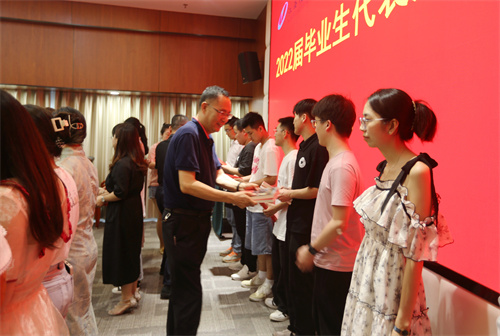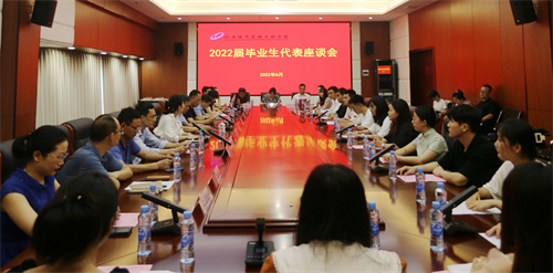 6月23日下午,学校在培训楼三楼会议室召开2022届毕业生代表座谈会。党委书记潘晓华,党委委员、副校长衷敬华,学生工作部(处)、招生就业处、总务处、创业教育学院、各二级学院党总支、团委负责同志及学校2022届毕业生代表参加座谈。
