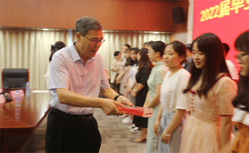 会后,校领导向毕业生代表赠送了《习近平与大学生朋友们》《信仰的力量》两本书籍,并合影留念。