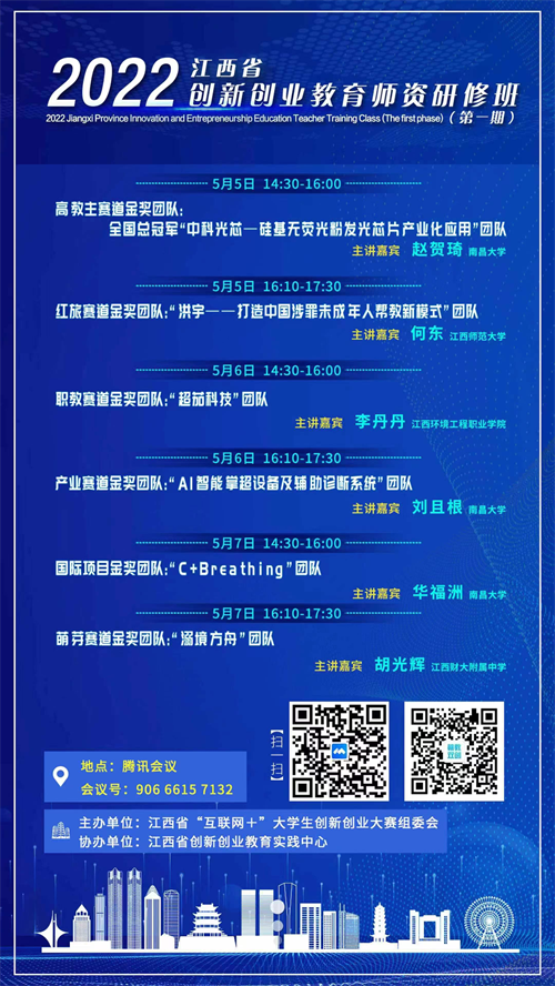为进一步增进我校教师对“互联网+”大学生创新创业大赛的全面了解,提升我校教师队伍创新创业教育教学能力,促进双创教育和专业教育融合,创业教育学院按照江西省大赛组委会要求组织报送了9名教职工(创业教育学院2名、各学院双创联络人7名)参加自5月5日—7日由江西省“互联网+”大学生创新创业大赛组委会办公室主办的2022年江西省创新创业教育师资研修班线上培训,除9名报名参训教工外,创业教育学院同时要求本部门全体教职工和创新创业卧龙班全体学员签到参训,并按照学校要求积极宣传动员学校师生参加线上培训。文法学院和航空运动学院等二级学院也积极组织本部门教职工参加了线上培训活动。