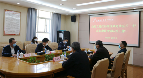 4月7日上午,红谷滩区委副书记、区长刘光荣一行莅临学校调研指导疫情防控工作,校党委书记潘晓华,党委副书记、校长秦夏明,党委委员、副校长衷敬华出席调研座谈会。