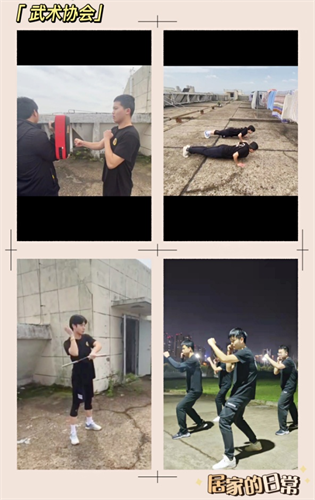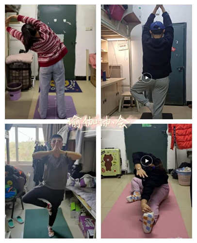 武术协会、跆拳道协会、篮球协会、瑜伽协会通过线上运动交流的方式,活跃了疫情期间的校园生活,让同学们在寝室也能跟学跟练,极具趣味性和吸引力,通过线上互相督促,大家每天坚持锻炼,增强了抗击疫情必胜的信心。