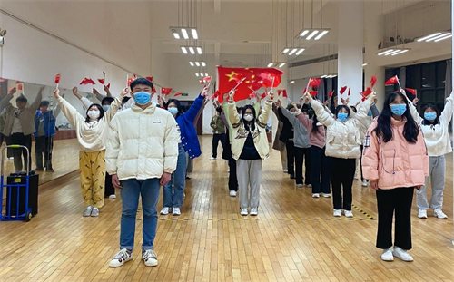 随着《我和我的祖国》音乐响起,参与快闪活动的二十多位红色故事英语宣讲队队员手持小国旗,用嘹亮的歌声和优美的舞姿向祖国和医务人员致敬、献礼。同学们挥舞国旗,齐声高唱:“我和我的祖国,一刻也不能分割,无论我走到哪里,都留下一首赞歌……”激昂的歌声不断回荡在新大学生活动中心,道不尽的是对祖国无限热爱和对抗疫医护人员的崇高敬意。快闪在同学们齐诵:“祖国万岁,感谢有你”中结束。