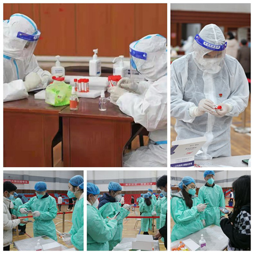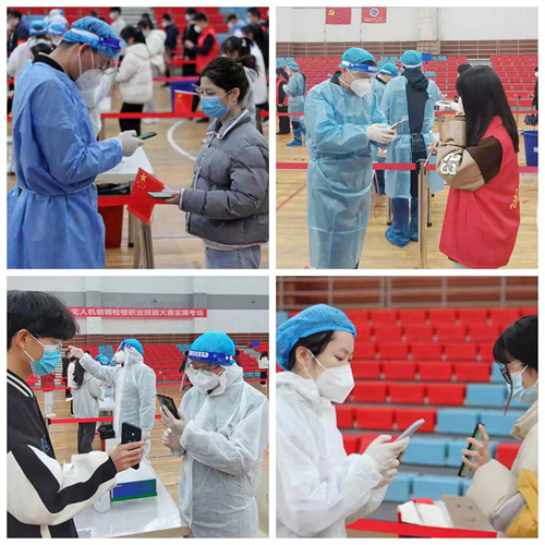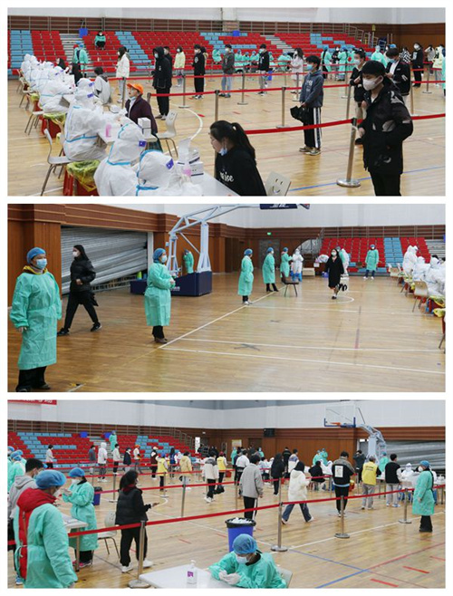 志愿者们在检测现场积极维持现场秩序,核对学生信息,引导师生有序排队,在核酸采样后迅速离场,保证了检测现场秩序井然。