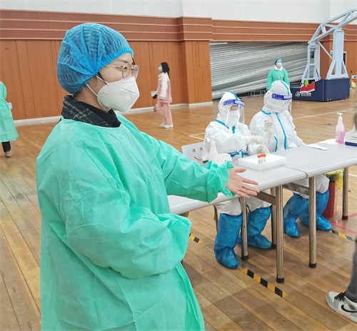 自3月16日学校封闭管理以来,她舍小家为大家,连续六天加班值守,处理学生发烧、安抚学生情绪等。为确保所在学院学生全员参加核酸检测,她采取人盯人的方法进行网格化管理,实时掌握检测数据。在检测现场,她及时调度,避免学生扎堆排队,尽量保证每位学生用最短的时间完成核酸检测。