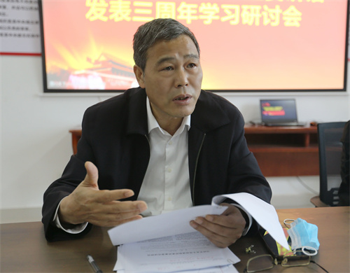潘晓华指出,习近平总书记在学校思政课教师座谈会上的重要讲话,从党和国家事业长远发展的战略高度出发,深刻阐明了学校思政课的重要意义,就如何办好新时代思政课作出部署、提出要求,为高校思政课建设指明方向、提供了重要遵循。习近平总书记重要讲话发表三年来,学校坚持把思政课作为落实立德树人根本任务的关键课程,在加强党的领导、强化教师队伍、深化思政课改革创新、推进“问题专题化团队教学改革”等方面作了大量工作,在全省“战疫思政课堂”、“一线课堂”、全省高校青年教师教学竞赛、全省高校思政课青年教师教学基本功比赛等系列活动中取得了骄人的成绩,赢得了社会认可、学校认可、师生认可。潘晓华感谢全体思政课教师在学校立德树人过程中作出的贡献、付出的努力,争取的荣誉。