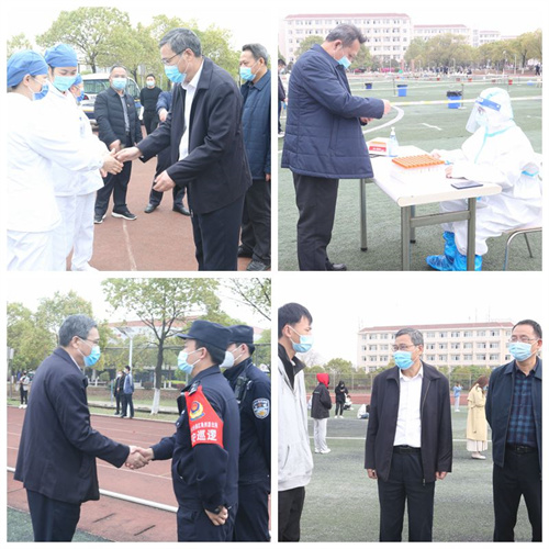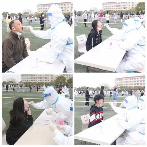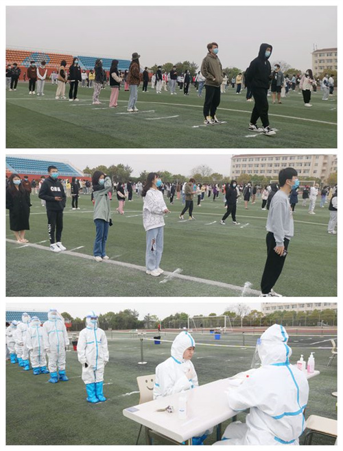 检测现场,各项工作有条不紊。在工作人员的引导下,全校师生按照地面标注的一米间隔线有序排队,逐一参加核酸检测。志愿者们协助扫描昌通码、进行信息录入。医护人员按照操作流程检测采样、封存样本。红角洲派出所民警和学校保卫工作人员维持现场秩序。经过3小时的紧张工作,顺利完成全校师生采样工作,共采样4310份,做到全校师生员工全覆盖。