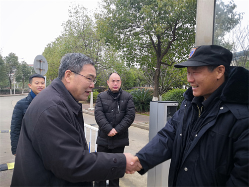 除夕上午,学院党委书记潘晓华在学院相关同志陪同下巡视了校园,查看重点部位的安保情况,并看望慰问在学院值班值守人员。