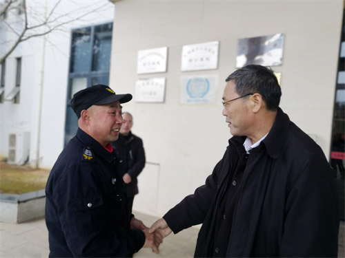 潘晓华重点查看了门卫新启用的人脸识别系统、航空大楼、培训楼的安保情况,与值班人员一一握手,问情况,聊家常,代表学院对他们在节日期间坚守岗位表示衷心感谢并致以新春的祝福和诚挚的问候,同时也对在节假日期间进一步做好疫情防控、安全巡查、防火防盗、校园卫生等工作提出了要求。