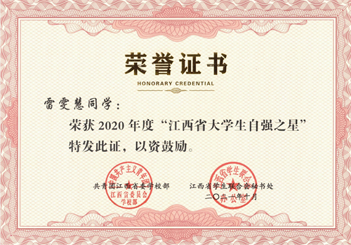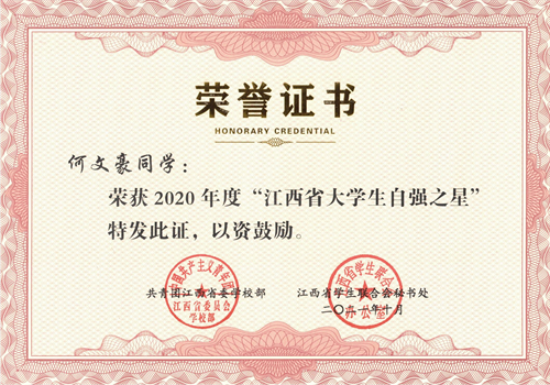 近日,2020年度“江西省大学生自强之星”评选结果出炉,机场学院2019级建筑工程技术2班何文豪、工商管理学院2019级市场营销2班雷雯慧获评2020年度“江西省大学生自强之星”称号。