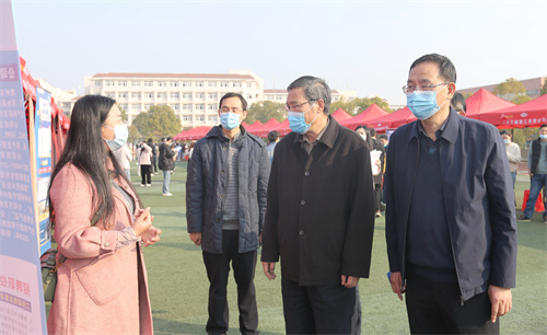 为贯彻“六稳”“六保”工作任务和教育部关于开展2022届高校毕业生校园招聘月系列活动的工作要求,切实为我院2022届毕业生做好就业服务工作,全力促进毕业生更加充分更高质量就业,12月11日上午,2022届毕业生双选会在田径运动场举行。学院党委书记潘晓华、党委委员、副院长衷敬华到场指导,与用人单位及毕业班学生亲切交谈。