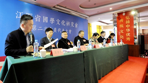 12月11日,江西省国学文化研究会第二次会员代表大会暨换届选举大会在南昌市总工会鑫峰假日酒店召开。江西省国学文化研究会七个会员代表团及有关嘉宾代表共70余人参加大会。其中,学术代表团来自江西经济管理干部学院、南昌大学、江西师范大学、江西财经大学、华东交通大学、江西科技师范大学、井冈山大学、豫章师范学院等。