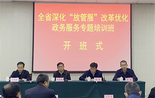 为进一步贯彻落实党中央、国务院有关“放管服”改革决策部署和省委、省政府工作要求,准确把握政务服务工作面临的新形势、新任务、新要求。12月1日,全省深化“放管服”改革优化政务服务专题培训班在学院开班。省政府办公厅一级巡视员廖裕良出席开班式,省政务服务办主任邵高,学院党委委员、副院长肖鸿晶出席并作讲话。开班式由省政务服务办二级巡视员陈钢主持。