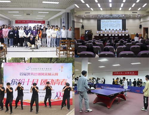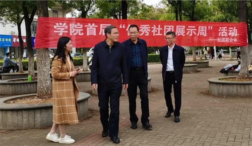 近日,由学院团委主办、社团联合会承办的“缤纷十月,团动青春”学院首届优秀社团风采展示周活动在食堂前广场举行。学院党委书记潘晓华,党委委员、副院长衷敬华、吴猛强到场指导,团委全体工作人员、各协会成员代表参与活动。