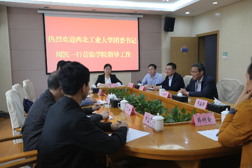西北工业大学团委书记周凯一行5人来院交流调研。学院党委书记潘晓华,院长助理段利兵热情接待了来宾,并进行了交流座谈。