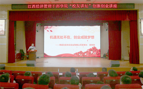 郭祥财,2008年毕业于工程造价专业,现任南昌社区农庄实业有限公司董事长。他以“机遇无处不在,创业成就梦想”为题,结合自身三次创业经历,分享了创业成长故事和体会,希望同学们敢闯敢试、创新求变、坚持到底,立足江西为经济社会发展振兴贡献力量。