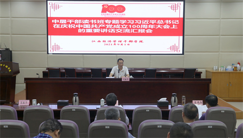 9月1日下午,学院中层干部读书班专题学习习近平总书记在庆祝中国共产党成立100周年大会上的重要讲话精神交流汇报会。党委书记潘晓华,党委委员、副院长肖鸿晶、熊运儿,院长助理段利兵出席汇报会,党委委员、副院长衷敬华主持汇报会。全体中层干部,各基层党支部书记、组织委员参加汇报会。