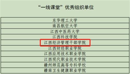 近日,省教育厅发布《关于公布江西省高校思想政治理论课教师“一线课堂”微课作品评选结果的通知》,学院被评为“一线课堂”优秀组织单位,学院为全省获此殊荣的十所高校之一。
