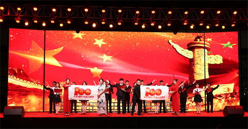 历经百年洗礼,鲜红的党旗,更加飒爽多姿;历经百载锤炼,庄严的党徽,更加坚如磐石。让我们紧密团结在以习近平同志为核心的党中央周围,坚定理想信念,以党史之光照亮前行之路,让红色基因融入血脉赓续传承,以永不懈怠的精神状态和一往无前的奋斗姿态,继续朝着实现中华民族伟大复兴的宏伟目标奋勇前进!