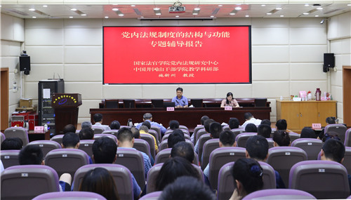6月29日,学院在一教学术报告厅举行党内法规专题辅导报告会。中组部、团中央第21批赴赣博士服务团成员、国家法官学院党内法规研究中心主任、中国井冈山干部学院教学科研部国情中心副主任施新州教授应邀作辅导报告。学院党委书记潘晓华,党委副书记、院长秦夏明,党委委员、副院长衷敬华、肖鸿晶、熊运儿,院长助理段利兵出席报告会,党委委员、副院长林蓉主持。全院中层干部、科级干部,各党总支(支部)委员参加学习。