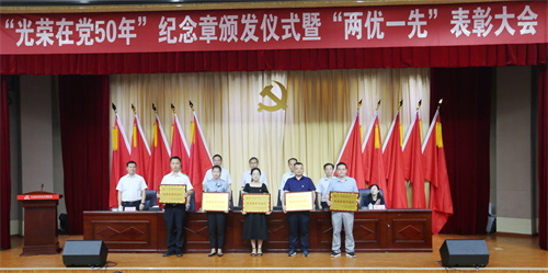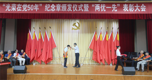 “光荣在党50年”纪念章获得者代表、全院共产党员、非党员的中层干部和具有高级职称人员参加会议。“光荣在党50年”纪念章获得者游振经、“优秀共产党员”荣誉称号获得者林芸先后作代表发言。