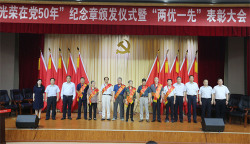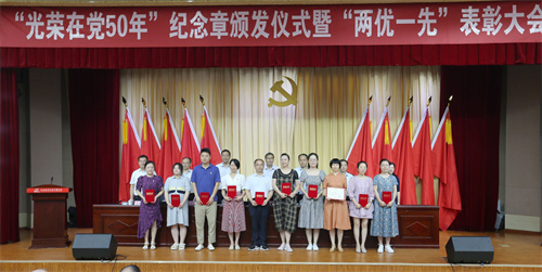在中国共产党百年诞辰之际,6月30日上午,学院在航空大楼多功能报告厅举行“光荣在党50年”纪念章颁发仪式暨“两优一先”表彰大会。党委书记潘晓华,党委副书记、院长秦夏明,党委委员、副院长衷敬华、肖鸿晶、熊运儿、林蓉出席会议。