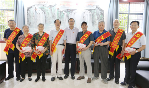 6月30日上午,在学院举行的“光荣在党50年”纪念章颁发仪式前,党委书记潘晓华,党委副书记、院长秦夏明集中慰问了8名来学院参加颁发仪式的老党员代表,并送上“致‘光荣在党50年’纪念章获得者的一封信”和慰问金。