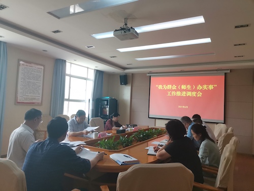 6月11日,学院召开“我为群众(师生)办实事”工作推进调度会。党委书记、学院党史学习教育领导小组组长潘晓华主持会议并讲话,党委委员、副院长林蓉,党史学习教育领导小组办公室、有关部门、单位主要负责同志参加会议。