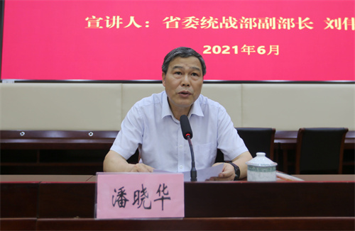 潘晓华指出,高校是党外知识分子比较集中的地方,历来是统战工作的重要阵地,是展示统一战线法宝作用的一个窗口。要深入学习领会习近平总书记关于加强和改进统一战线工作的重要思想,胸怀“两个大局”,以高度的政治责任感和历史使命感,认真学习宣传、贯彻执行《中国共产党统一战线工作条例》,努力把统一战线发展好,把统战工作开展好,不断开创新时代统一战线工作新局面。
