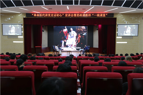 宣讲会以互动访谈形式开展,毛泽民烈士之外孙曹宏、开国少将罗章之子罗海曦、江西干部学院教师杨洋,通过一问一答为在场师生讲述了老一辈革命家为了信仰、为了党和国家,舍身忘己、鞠躬尽瘁的感人事迹。