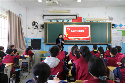 林蓉以《弘扬井冈山精神》为题,从习近平总书记在党史学习教育动员大会上的重要讲话精神出发,围绕“井冈山革命根据地的建立”,“井冈山精神的科学内涵”,“青少年如何弘扬井冈山精神”等三方面内容为在场师生作宣讲。