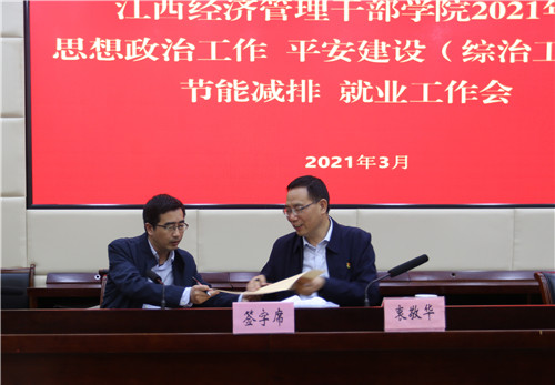会上,院领导分别与相关部门负责人签订了网络安全责任状、平安建设(综治工作)责任状、节能责任状、就业承诺书。保卫处(综治办)、总务处(节能办)、招生就业处主要负责同志作了工作报告。