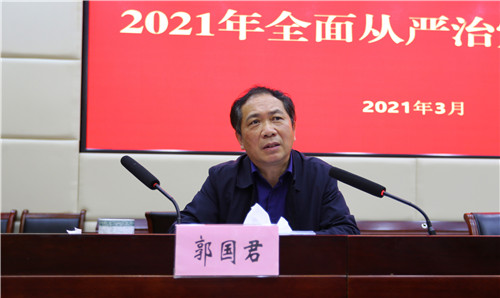 郭国君在讲话中肯定了学院2020年全面从严治党工作,指出了学院存在的问题,并就学院政治生态建设提出了要求,强调要深刻学习领悟习近平总书记关于政治生态建设的重要论述,提高政治站位,增强政治生态建设的政治自觉;要着力强化组织领导,营造良好政治氛围,解决突出问题,增强政治生态建设的行动自觉;要一体推进“三不”,筑牢思想防线,扎紧制度笼子,强化纪法震慑,为营造风清气正政治生态提供坚强政治保障。