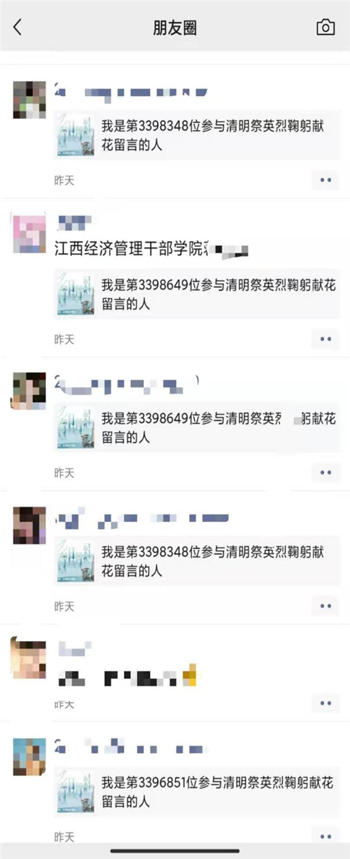 各基层单位积极组织引导师生致敬先烈先辈,前往烈士陵园鞠躬献花,在网上祭扫专栏向革命烈士敬献花篮、留言致敬,观看“追寻先烈足迹”短视频表达缅怀之情。通过形式多样的交流学习分享,大家纷纷表达对先烈先辈的崇敬之情。