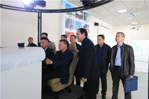 座谈会前,龙卿吉一行饶有兴趣地参观了无人机应用实训中心、航空工程训练中心等航空类实验实训室。