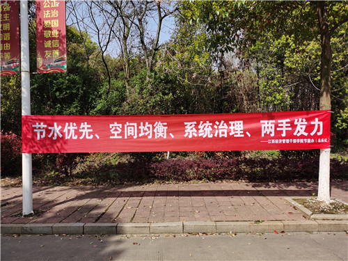宣传周期间,学院通过横幅、海报、展板等形式在重点用水区域大力宣传节水知识;利用电子屏滚动播放《江西省公共机构干部职工节水行为规范》、节水口号、公益视频;在官方微信推送节水专题文章,营造浓厚的节水宣传氛围。各二级学院、各部门积极组织广大师生学习节水行为规范、参与网络节水知识竞答,各班级组织学生召开“节约用水”专题班会。