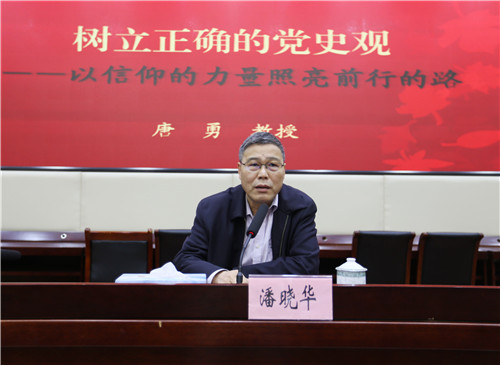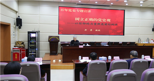 组织人事部部长唐勇教授以《树立正确的党史观—以信仰的力量照亮前行的路》为题,围绕什么是正确的党史观、如何树立正确党史观、如何用正确的党史观指导党史学习教育等方面作宣讲报告。