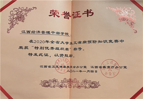 据悉,在2020年全省大学生预防艾滋病网络知识竞赛活动中,学院荣获“特别优秀组织奖”称号。